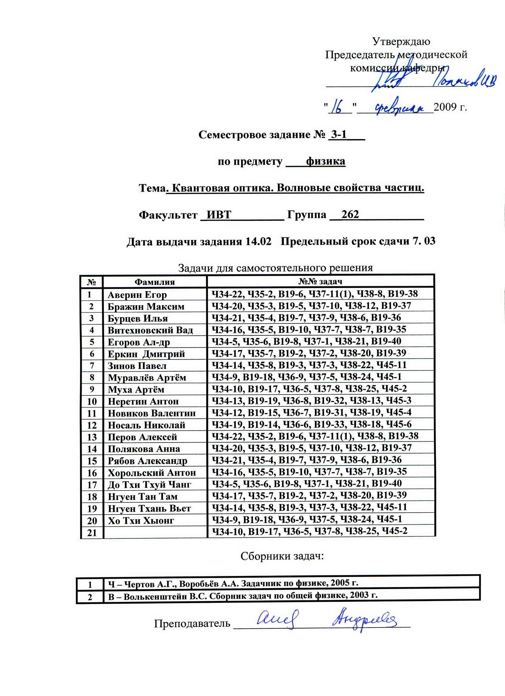Семестровое задание№1 по физике.Квантовая оптика.Волновые свойства частиц.