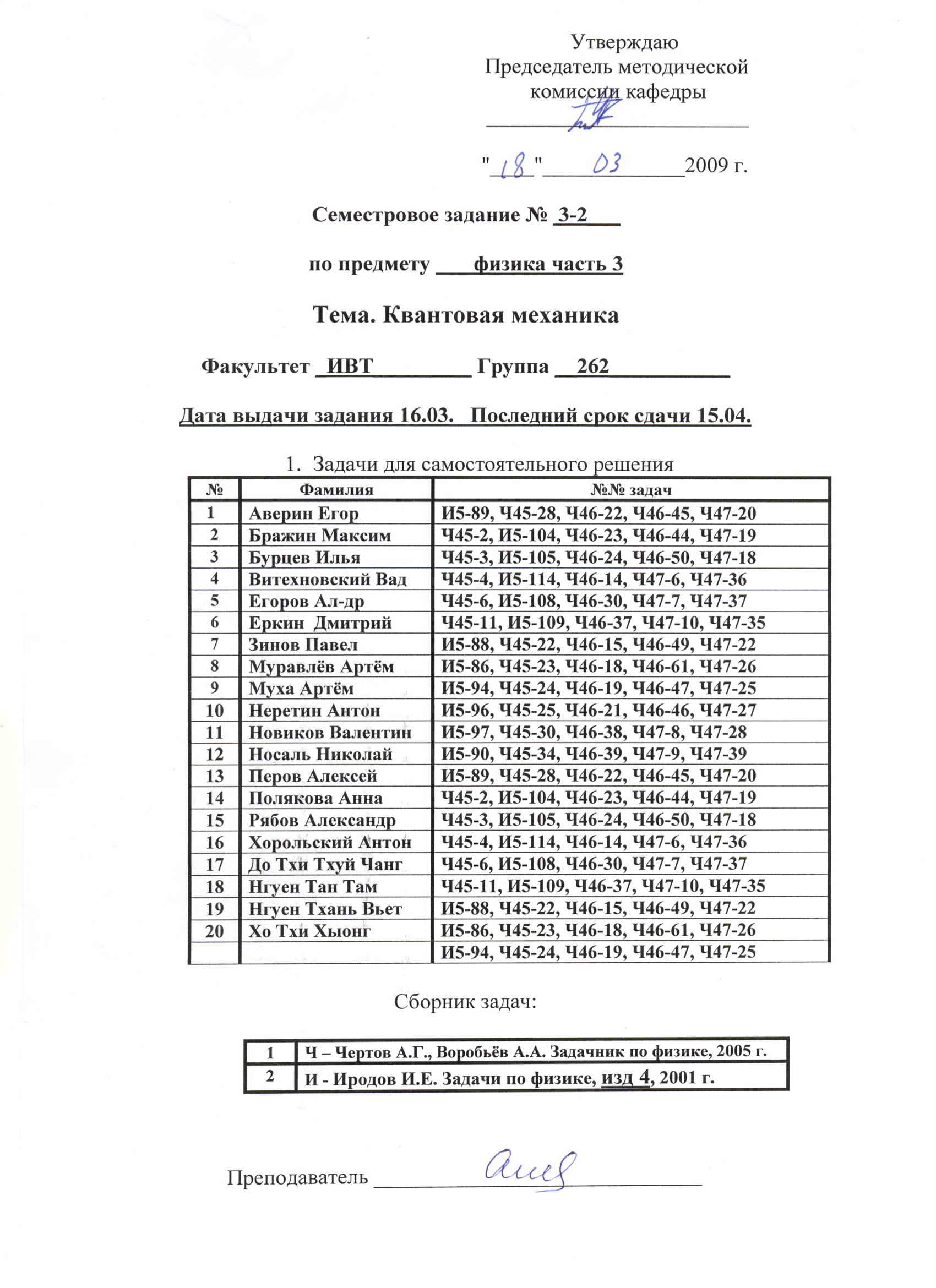 | Семестровое задание№1 по физике.Квантовая механика.