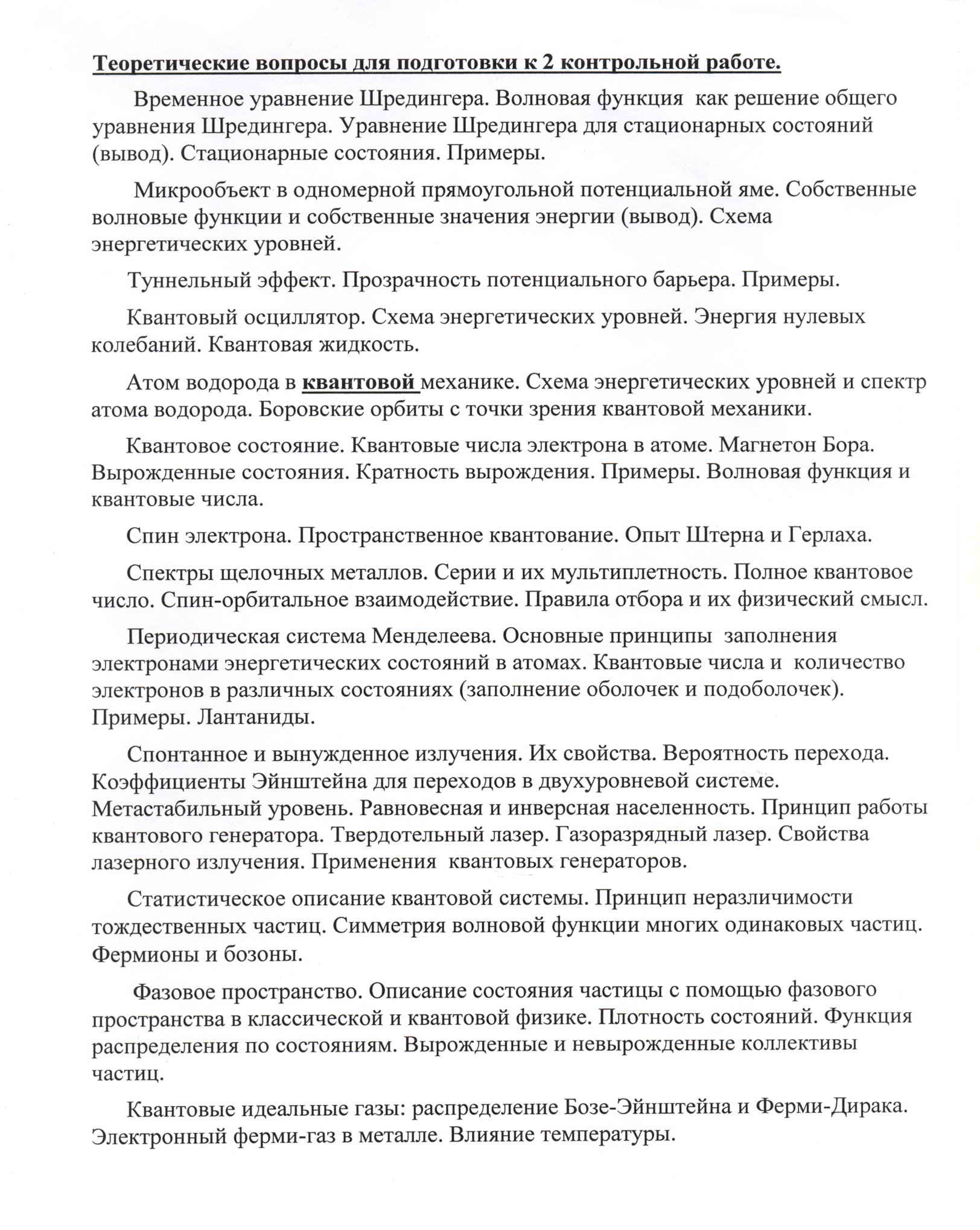 | Теоретические вопросы для подготовки к контрольной работе №2